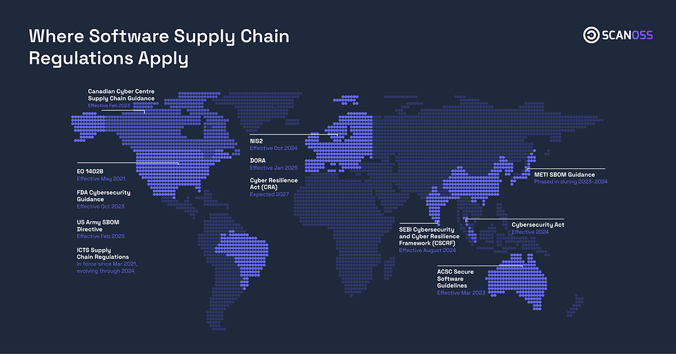 To put these requirements into a global context, our LinkedIn article on mapping global software supply chain regulation outlines how quantum readiness fits into a wider trend of tightening digital regulations. Our Global Software Supply Chain Regulation Infographic provides a visual overview of relevant laws and frameworks across key markets.